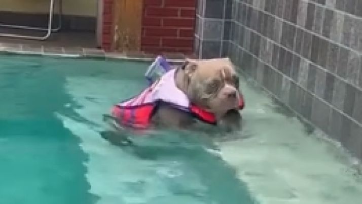 American Bully faz "hidroginástica" na piscina e diverte família; assista ao vídeo