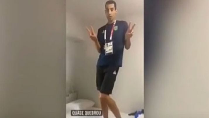Douglas Souza viraliza mostrando cama da Vila Olímpica: 'Parece de papelão'