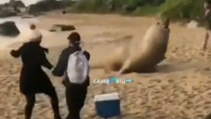 Elefante-marinho se irrita com barulho e avança em banhistas na beira da praia; veja