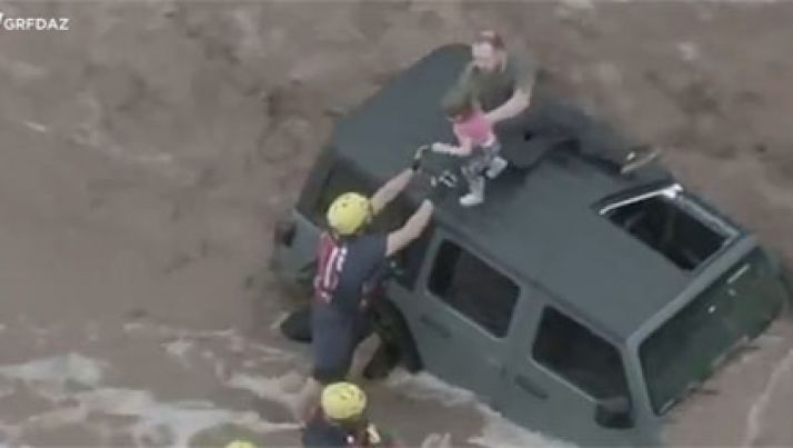 Família é resgatada de carro preso em enchente nos Estados Unidos; veja