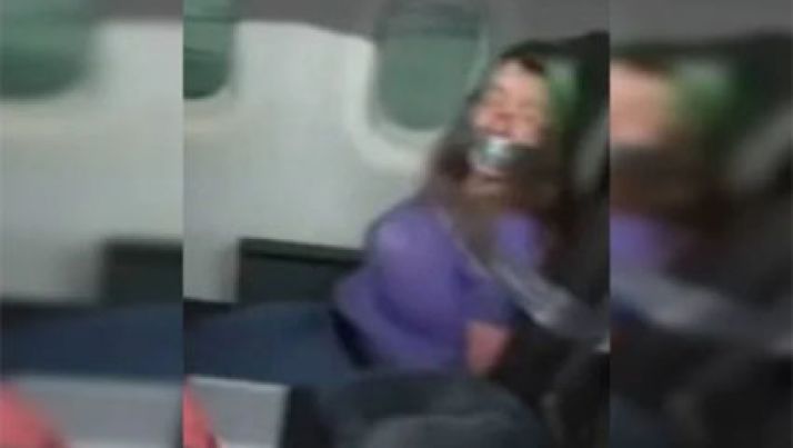 Mulher é amarrada com fita adesiva após tentar abrir porta de avião; veja