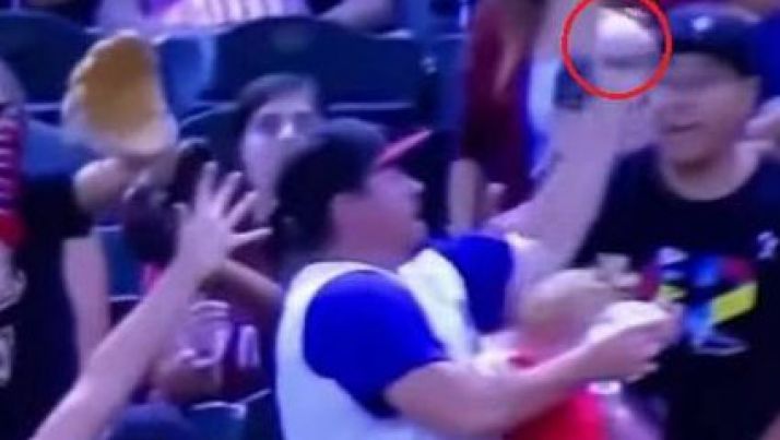 Torcedor segurando bebê e copo de cerveja faz 'mágica' e agarra bola rebatida; veja