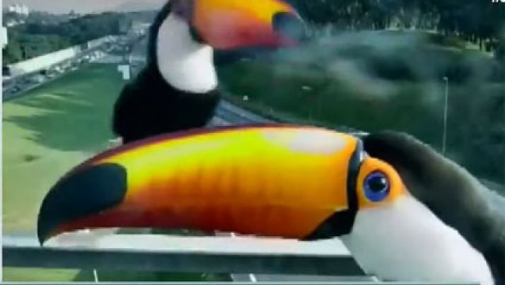 Câmera de segurança registra brincadeira entre tucanos em São Paulo; veja