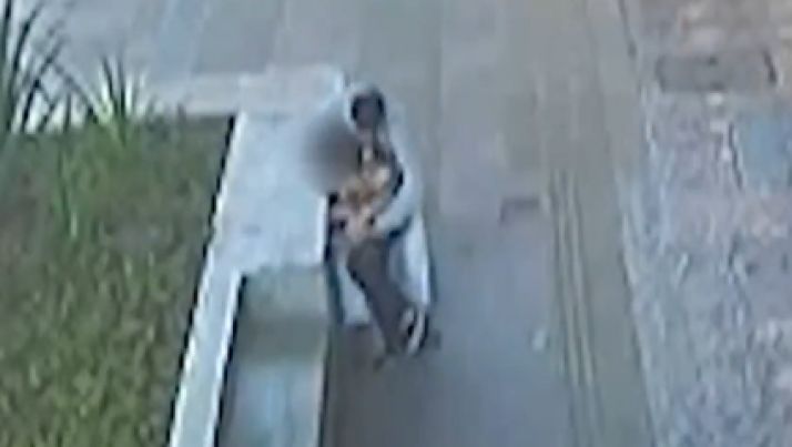 Ladrão coloca braço em volta de senhora e a empurra no chão para roubar celular. Veja.