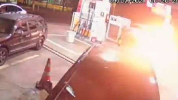 Motorista perde controle da direção e atinge em cheio bomba de posto de gasolina