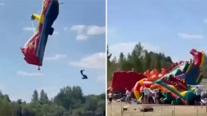 Ventania arremessa crianças de brinquedos infláveis na Bielorrússia; veja