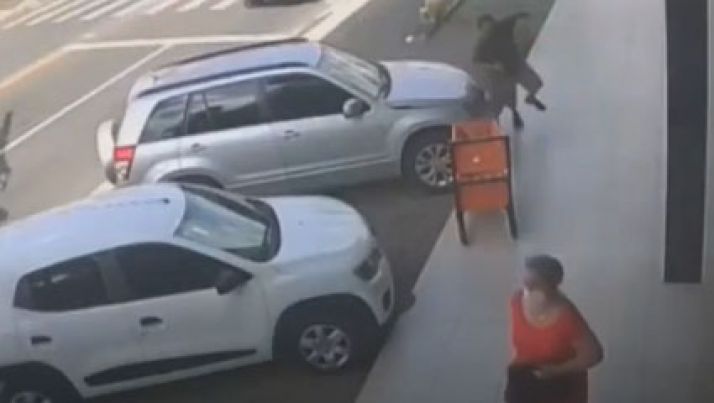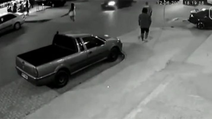 Mulher agiu rápido e escapou de ser atingida por 2 veículos envolvidos em batida
