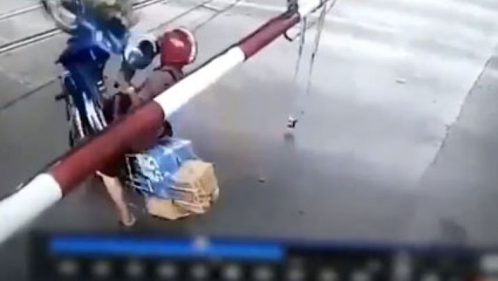 Entregador apressadinho tenta cruzar linha do trem e acaba quebrando carga; veja