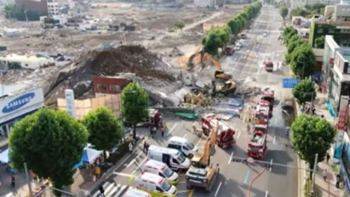 Vídeo mostra prédio de 5 andares desabando sobre ônibus na Coreia do Sul
