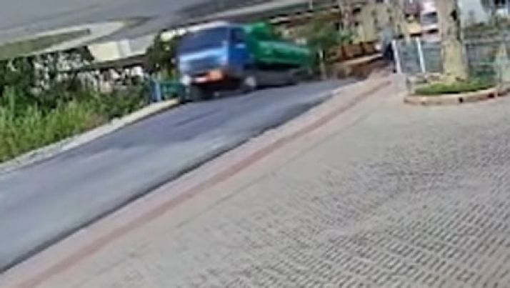 Cena impressionante: motociclista quase é atingido por caminhão desgovernado; veja