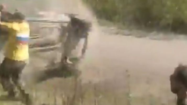Durante rally, carro sofre acidente em alta velocidade e espectador escapa por pouco