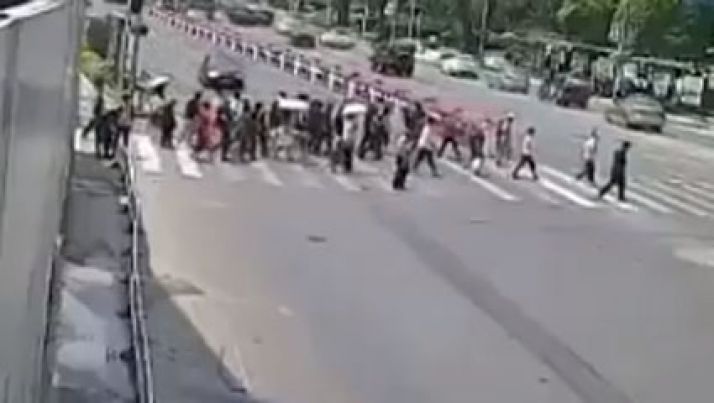 Cenas fortes: carro de luxo em alta velocidade atropela diversas pessoas na faixa de pedestre