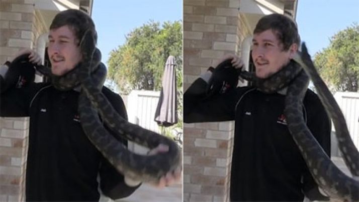Homem é surpreendido com picada de cobra enquanto ela se enrosca em seu pescoço; veja