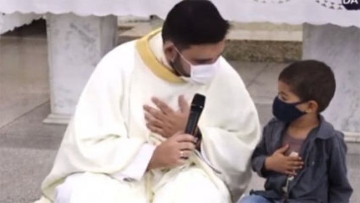 Criança interrompe padre e pede oração pelo padrinho que está intubado com covid-19