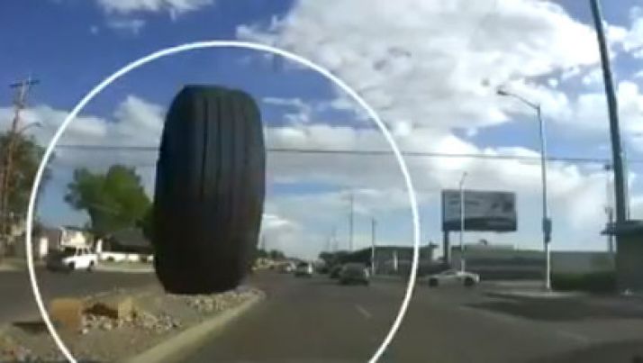 Carro com pai, mãe e filho escapa por pouco de ser atingido por roda solta; veja