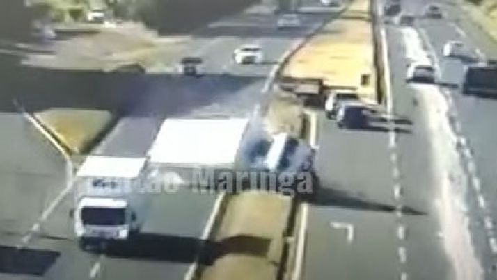 Câmera registra caminhão sendo fechado e tombando no Paraná; veja