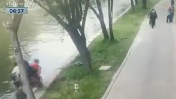 Pai e filho caem de moto em rio e são salvos por pessoas que passeavam. Veja.