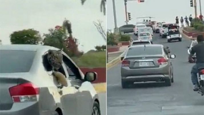 Viralizou: carro circula com tigre com a cabeça para fora de janela; veja