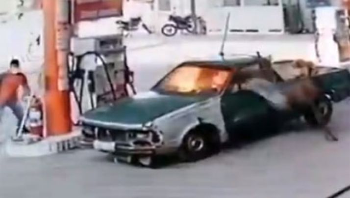 Carro pega fogo ao lado de bomba de combustível e gera pânico; veja