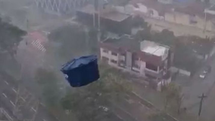 Vídeo mostra momento em que caixa d'água sai voando em tempestade no ES