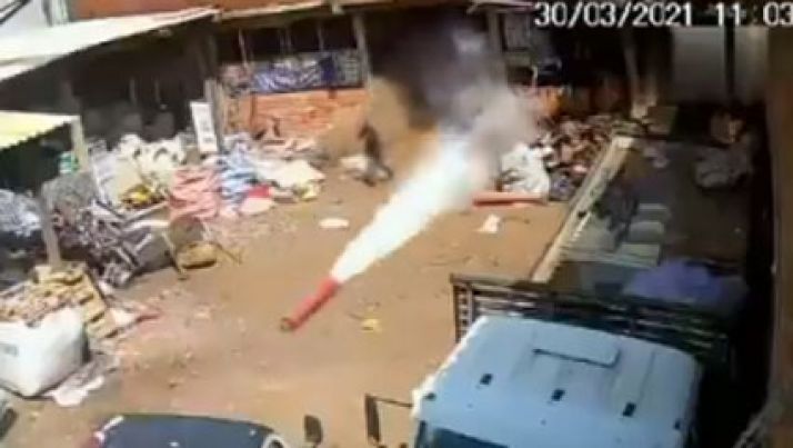 Cilindro de oxigênio explode em oficina e deixa um homem ferido; veja