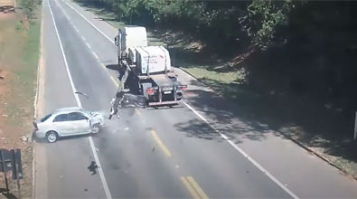 Imagem forte: carro atinge motociclista em cheio durante ultrapassagem em BR