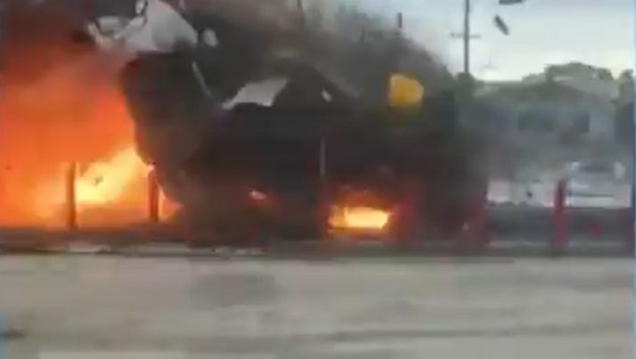 Caminhão fica preso nos trilhos e explode ao ser atingido por trem; veja