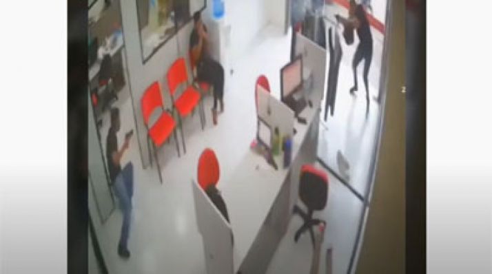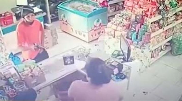 Câmera flagra funcionária de mercado reagindo a assalto e botando ladrão pra correr