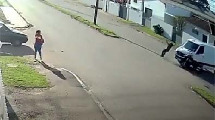 Flagra impressionante: motociclista salta da moto e cai em pé após acidente