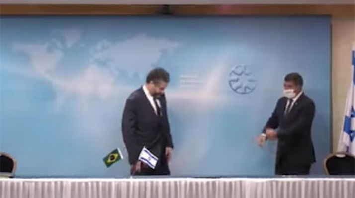 Ernesto é lembrado de máscara antes de tirar foto com ministro israelense