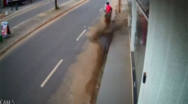Câmera de segurança flagra grave acidente de moto; 2 pessoas ficaram feridas