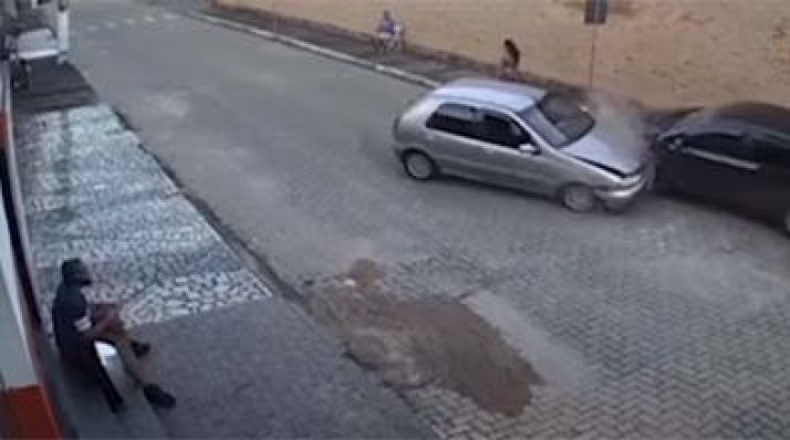 Motorista perde o controle e atinge carro que estava parado; mulher quase foi atropelada