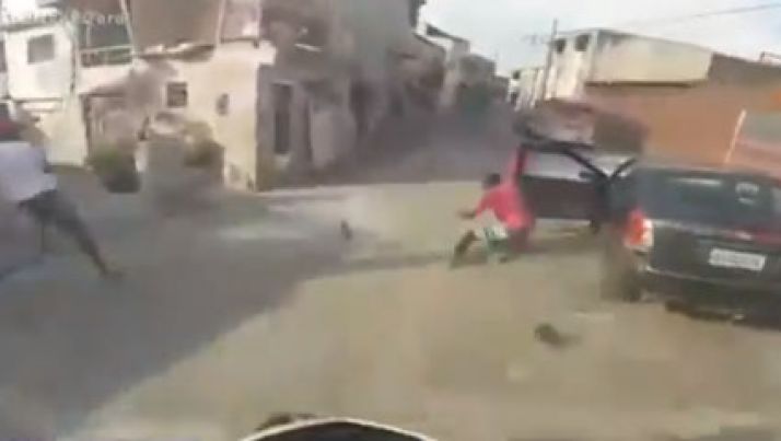 Homem vê namorada sendo assaltada e joga o carro em cima do bandido; veja