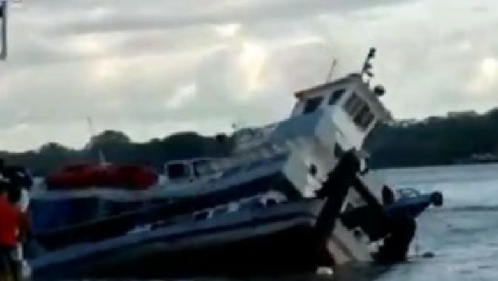 Barco rebocador afunda por causa do peso e quase leva uma lancha junto; veja