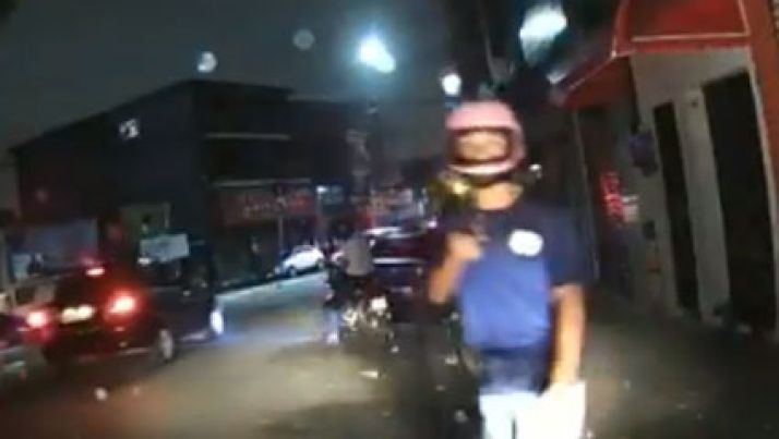 Mulher cai da moto ao atingir fios de telefonia que estavam na rua; veja