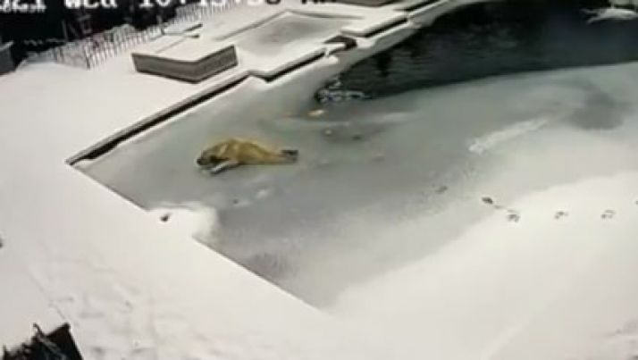 Cachorra toma susto ao cair em piscina congelada; animal foi resgatado; veja