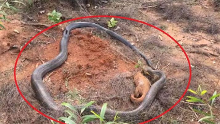 Vídeo mostra cobra-rei devorando lagarto inteiro em bote certeiro