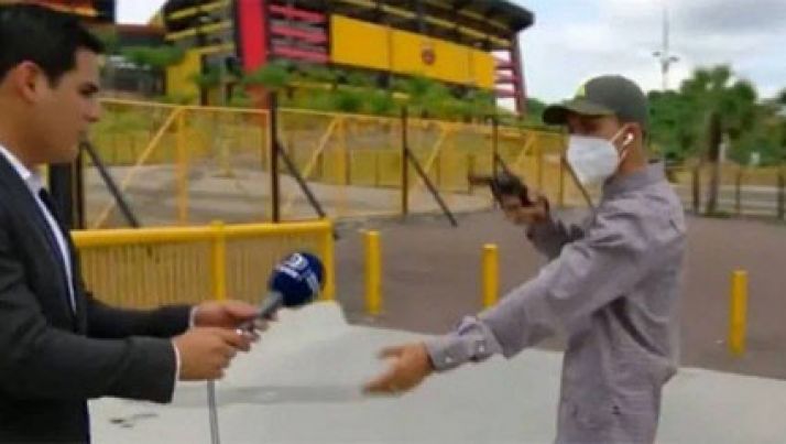 Assaltante ataca equipe de TV durante 'ao vivo' na frente de estádio; veja
