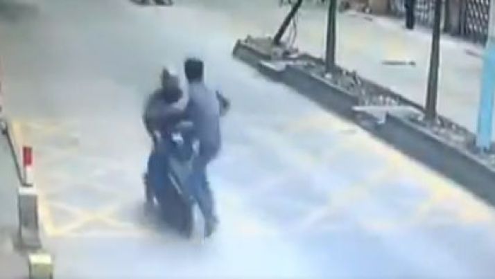Caminhoneiro dá voadora em bandido de moto que tinha roubado o seu celular; veja