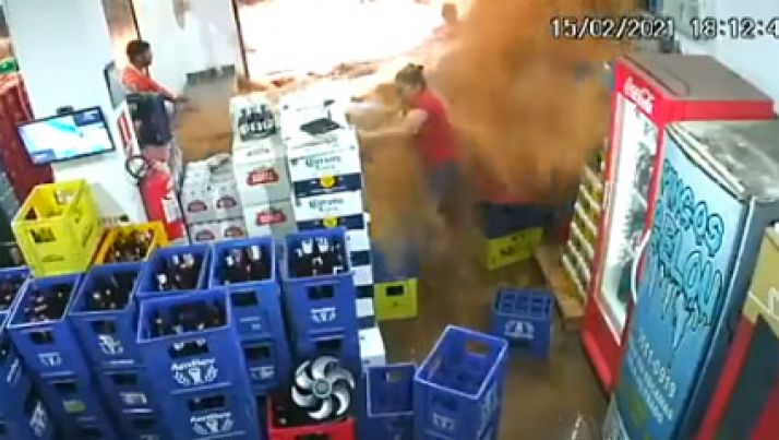 Cliente e funcionária de adega são atingidos por "mar de lama" durante temporal; veja