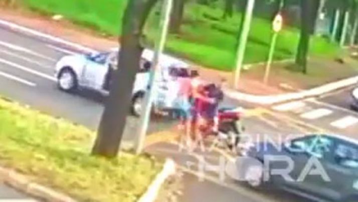 Homem é agredido com golpes de capacete durante briga de transito e desmaia