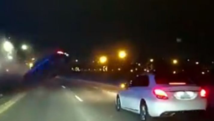 Dez carros se envolvem em acidente na estrada à noite e 2 pessoas ficam feridas