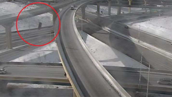 Picape cai de mais de 20 metros de altura e motorista sobrevive; veja