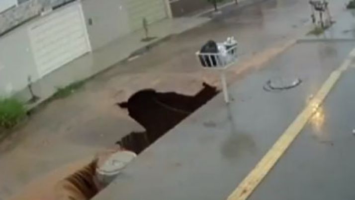Cratera se abre no meio da rua, em Goiânia; cena assustou moradores