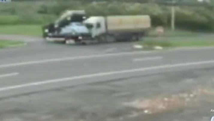 Caminhão tenta fazer retorno e é atingido em cheio por uma carreta; veja