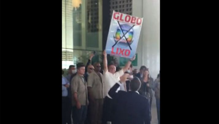 Em aeroporto, Jair Bolsonaro levanta cartaz escrito “Globo Lixo”; veja