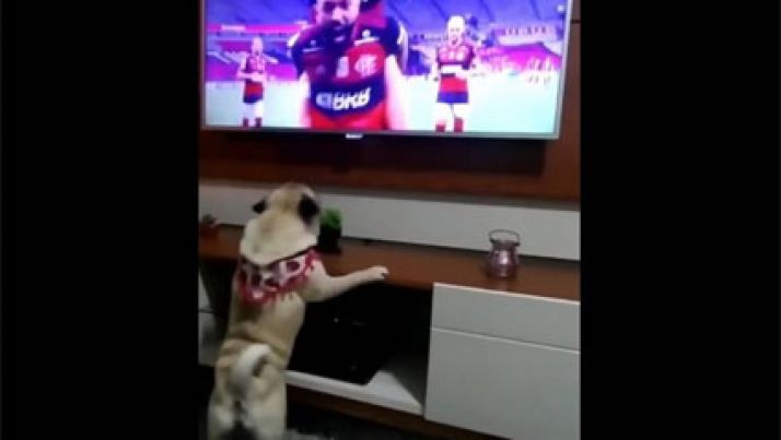 Cachorro vira xodó da torcida ao comemorar gols do Flamengo; veja