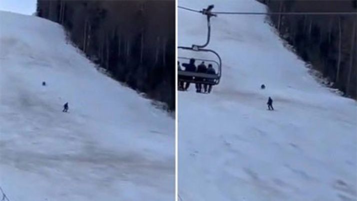 Esquiador não percebe estar sendo perseguido por urso em descida de montanha; veja