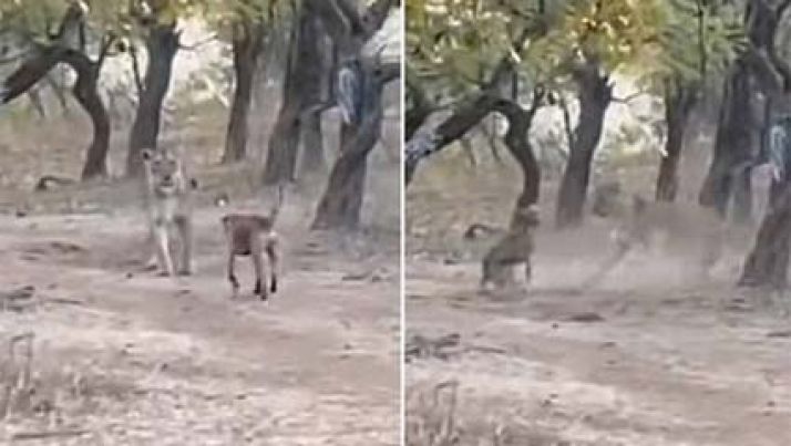 Corajoso! Cão de rua enfrenta leoa em parque ambiental e sai vivo; veja