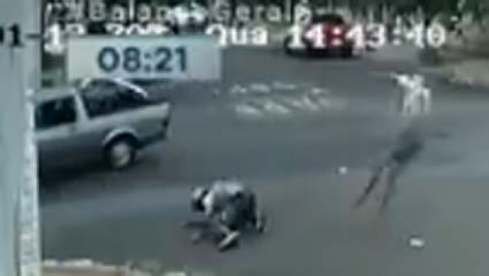 Motociclista que carregava botijões de gás voa após bater em carro; veja